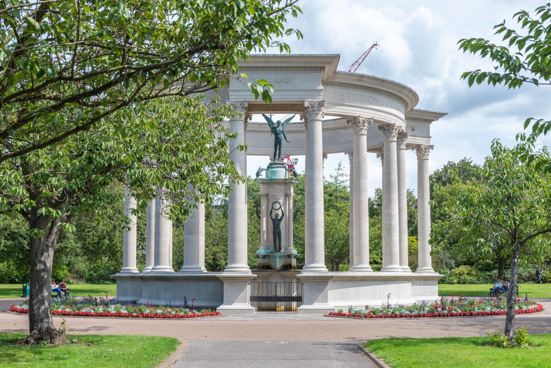Overhead image of the Falklands War Memorial and Welsh National War Memorial in Alexandra Gardens
